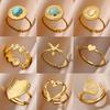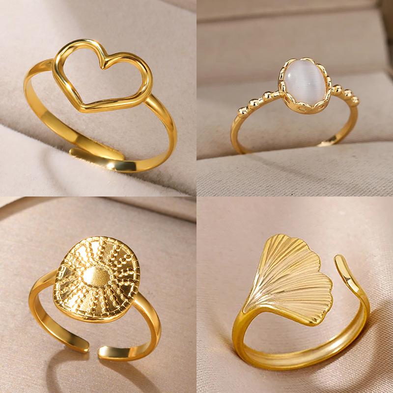 Anéis da Moda de Opala Branca para Mulheres Cor Ouro Aço Inoxidável Anel de Opala Joias de Casamento Noivado Presente de Aniversário