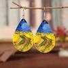 Classic Van Gogh Starry Night Earrings Vintage Tree Of Life Water Drop Leather Earrings For Women