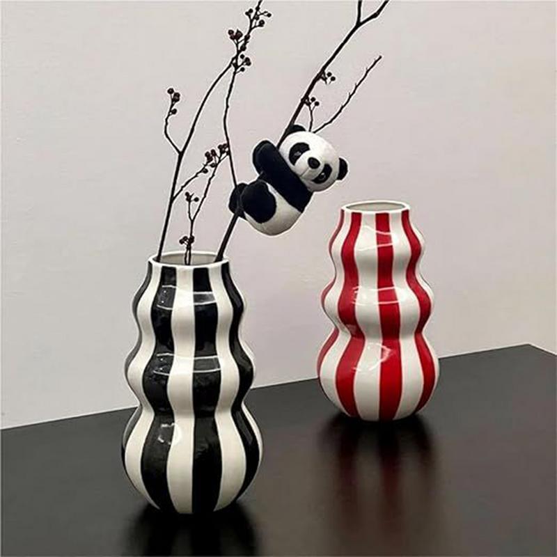 Ceramic Gourd Shaped Vase Aesthetic Vase Striped Flower Container Craft Bathroom Kitchen Indoor Room Table Centerpieces Decor