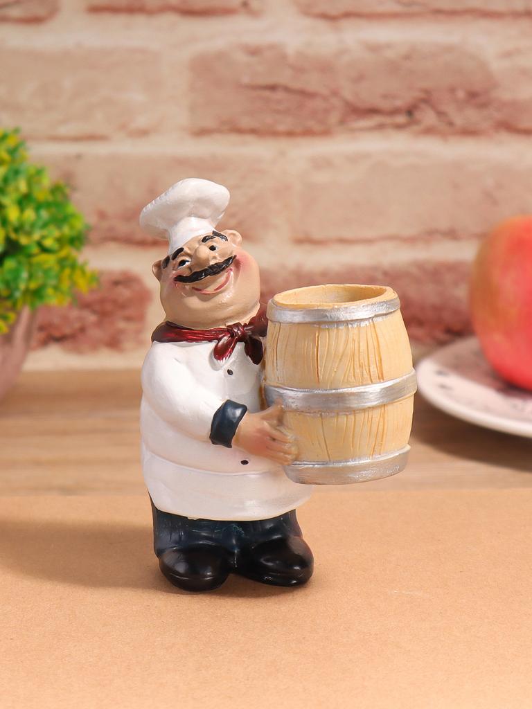 Suporte Criativo para Palitos de Dente em Resina com Escultura de Tubo de Palitos de Dente de Chef, Utensílio de Mesa Decorativo para Casa, Sala de Estar e Mesa de Jantar