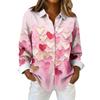 Blusa feminina com estampa de natal, botão, manga comprida, casual, básica, gola, top regular