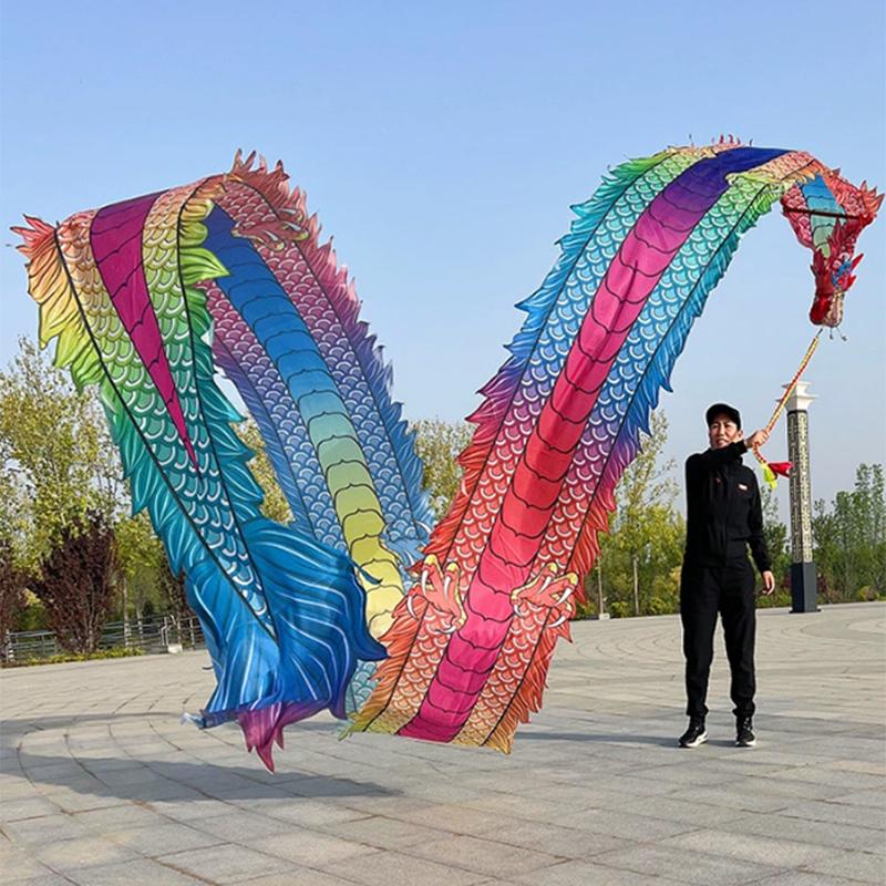6/8/10m 3D Quadrado Fitness Dança do Dragão Vermelho Adulto Ano Novo Chinês Dança do Dragão Fita Adereços de Performance de Palco Liderando