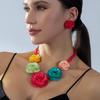 Colar Feminino Retrô Turquesa com Contas, Coração Grande e Pérolas de Imitação