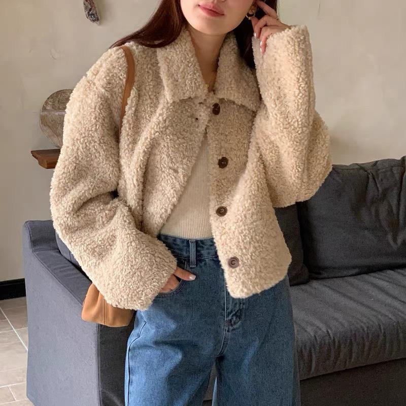 Korean Chic Plus Size Lapel Cardigan: Autumn/Winter Warm Loose Double-Sided Long Plush Coat for Women