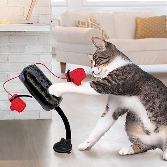 Engage in Energetic Play: The Cat Boxing Toy features a firm suction cup for secure attachment to smooth surfaces, creating a stable play area for your feline friend's lively antics.