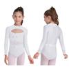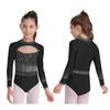 Girls Dance Bodysuit Long Sleeve Rhinestone Leotard with Back Zipper & Cutout for Performance