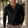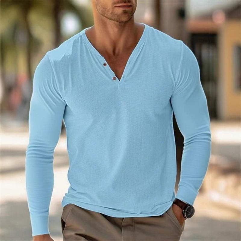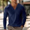 Men's Cotton Linen V-neck Long-sleeved T-shirt Autumn Casual POLO Shirt