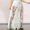Saia Midi Transparente de Renda Crochê Moda Europeia e Americana - Sexy, Linha A, Primavera/Verão, Microelástica.
