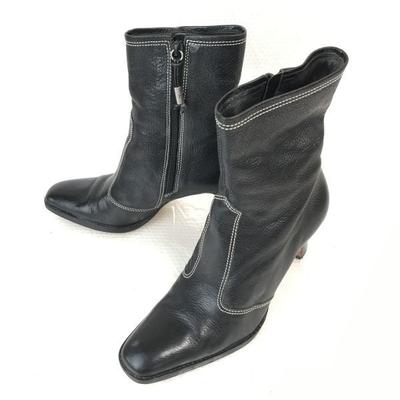 Botas Curtas de Salto Alto de Couro 6C/22.5-23 Pretas Zíper Lateral(USADO)