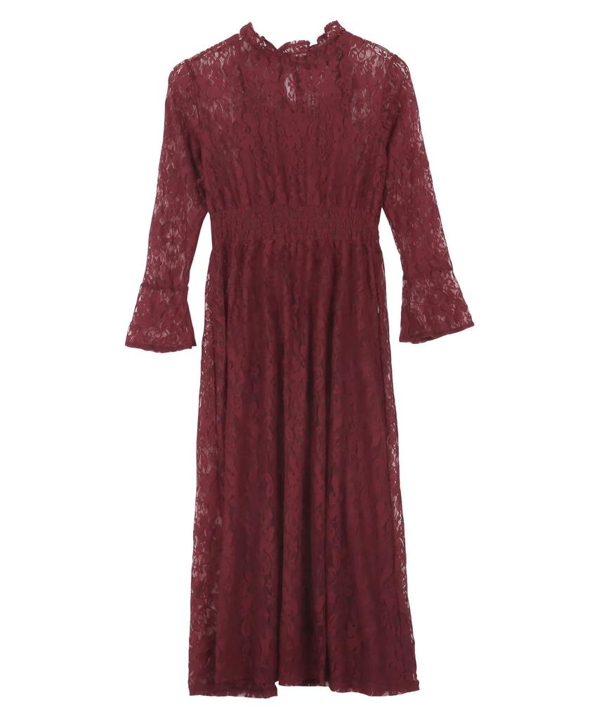 [Kobe Lettuce] [Petit Lettuce] All-lace Occasion Flare Dress with Inner [E3221] Free Size Bordeaux