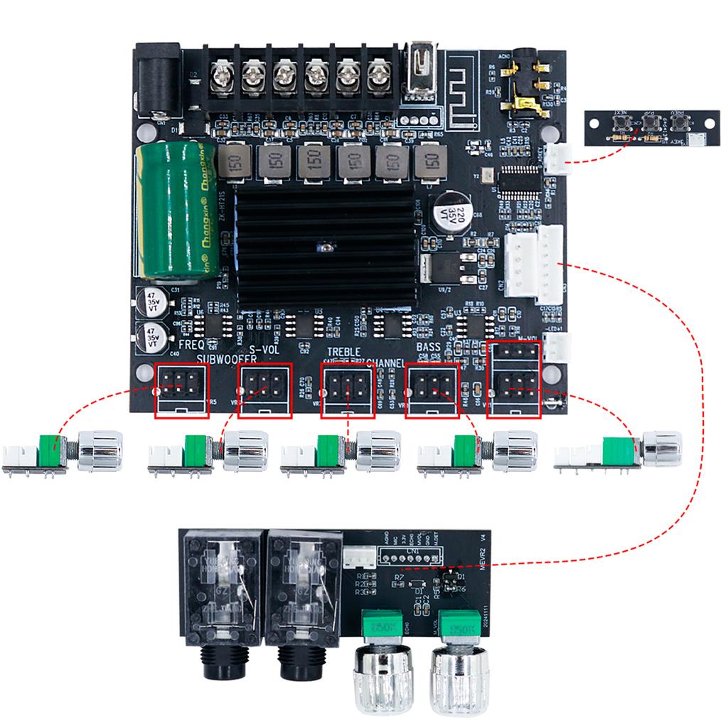 50W+50W+100W BT Amplifier Board with Subwoofer 2.1 Channel Digital Power Amplifier Board Volume Control for DIY Wireless Speaker