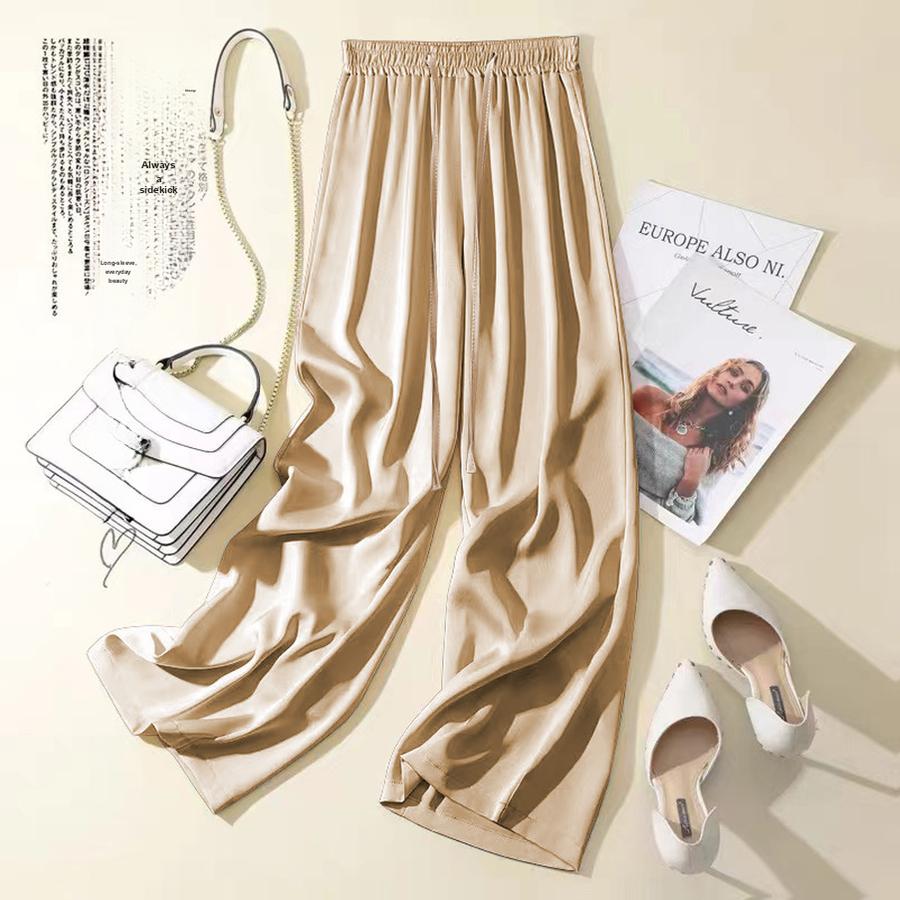 Calças de Cetim Glamorous Vixen Pernas Largas Femininas Verão Novo Cintura Alta Soltas Fluídas Maxi