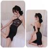 Women Sexy Lingerie Nightdress High Fork Sensual Lace Transparent Dress With Thongs Hollow High Split Temptation Sleepwear