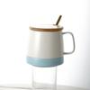 Caneca Nórdica Criativa com Tampa Colher Casal Emendada Fosca Cor Leite Esmalte Caneca de Café Caneca Cerâmica Caneca com Tampa de Madeira