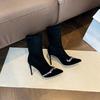 Fashion Women Rhinestone Pointed Toe High Heel Ankle Boots Black Suede Stiletto Elegant Party Shoes