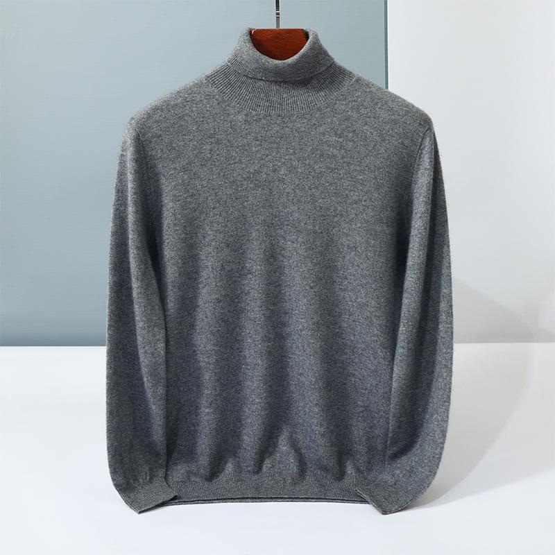 Cashmere shirt men's high lapel neck medium and thick knitted sweater warm youth solid color