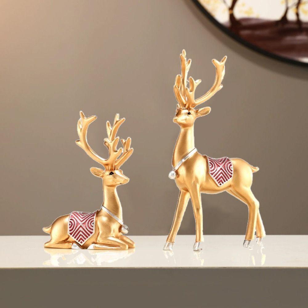 2pcs Resin Deer Ornaments Minimalist Animal Sculpture Desktop Ornament Elk Statue Car