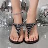 Fashion Open Toe Breathable Flat Sandals Glamorous Thong Women Rhinestone Decorate Slingback Flat Sandals