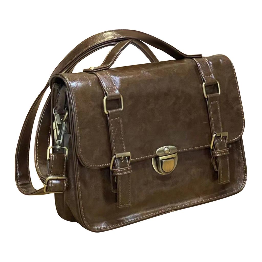 Bolsa de Carteiro Vintage com Fivela de Inverno, Bolsa de Uniforme, Bolsa Casual de Aula, Pasta Elegante para o Trabalho, Bolsa Transversal Descrever