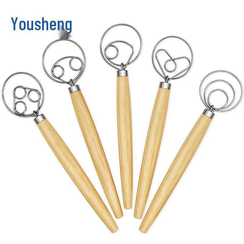 Stainless Steel Egg Beater & Dough Mixer with Wooden Handle
