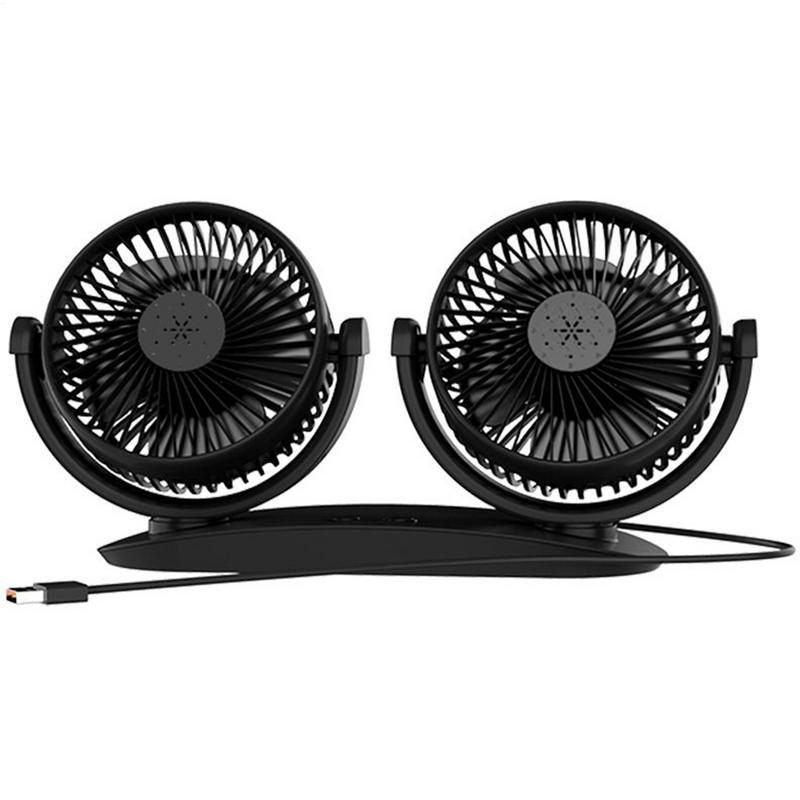 Portable Car Fan Double Head USB Desk Fan Strong Wind 360-Degree Rotation Cooling Air Circulator Dashboard Accessories For SUVs