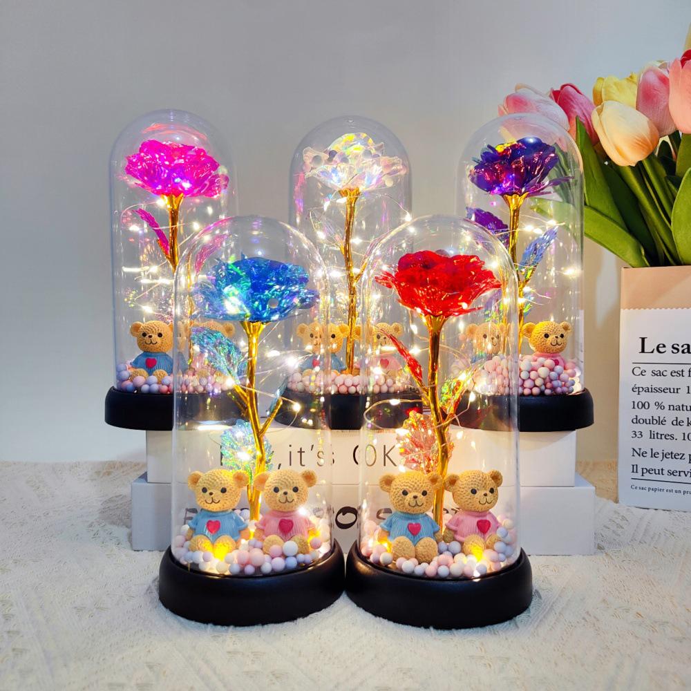 Valentine's Day Light-Up Preserved Rose Night Light with Acrylic Cover - Perfect Birthday Gift for Girls