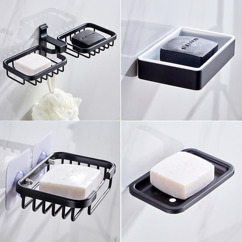 Punch-Free Wall-Mounted Black Aluminum Soap Dish Holder