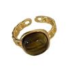 Retro Inspired Natural Stone Ring Opening Adjustable Rings for Women and Girls Stylish Everyday Wear Finger Accessories