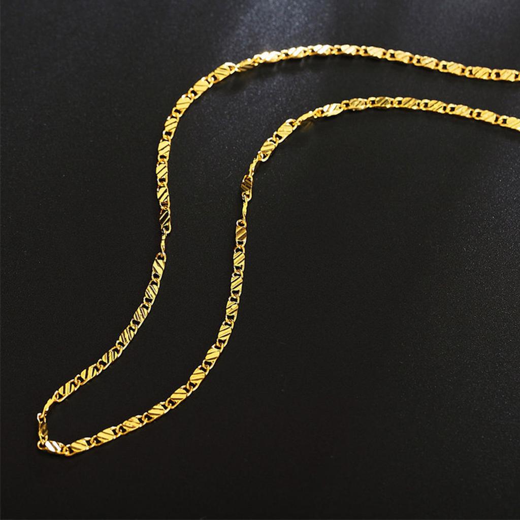 40-75cm 18k Gold Color Charm 2mm Flat Chain Necklaces For Women Men Luxury Fashion Party Wedding Jewelry