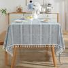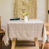 Light Green Rectangular Tablecloth Boho Rustic Farmhouse Decoration Solid Color Tassel Living Room Kitchen Dustproof Table Cover