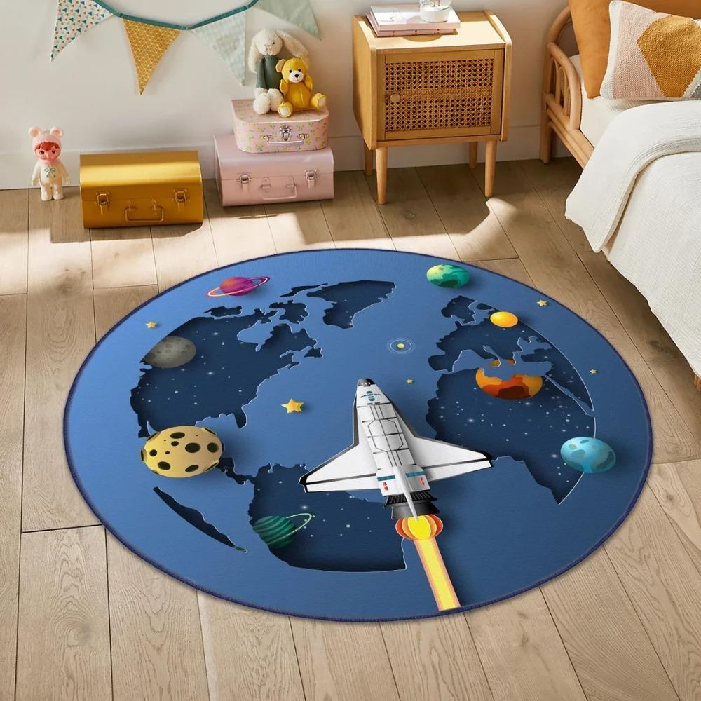 Round Space Theme Carpet Mat Rug Home Decoration Kids Room Astronaut Rocket Planet Pattern Non-Slip Floor Mat Bedroom Carpet