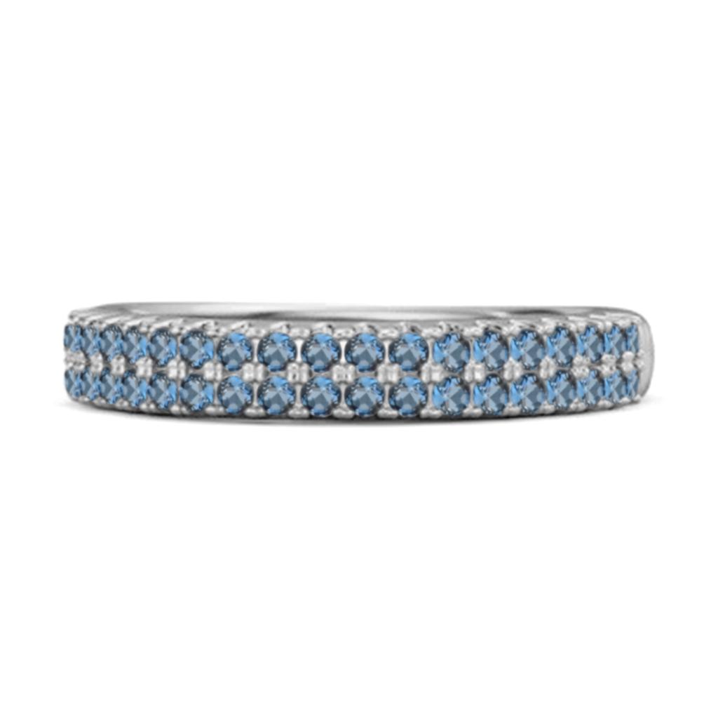 London Blue Topaz Dual Row Pave Band Ring - 925 Sterling Silver