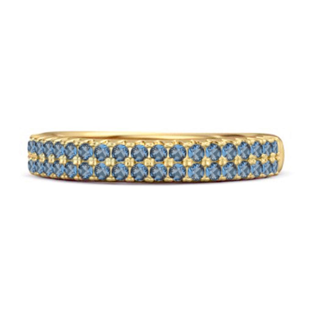 London Blue Topaz Dual Row Pave Band Ring- 925 Sterling Silver Gold Vermeil