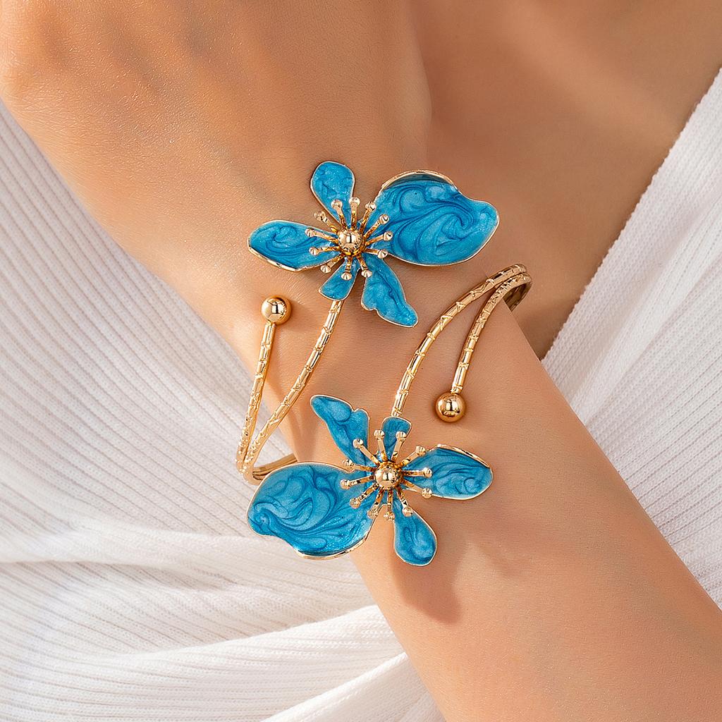 Elegant And Simple Design, Fresh And Sweet, Gold Enamel Glaze Craft, Flower Opening Bracelet