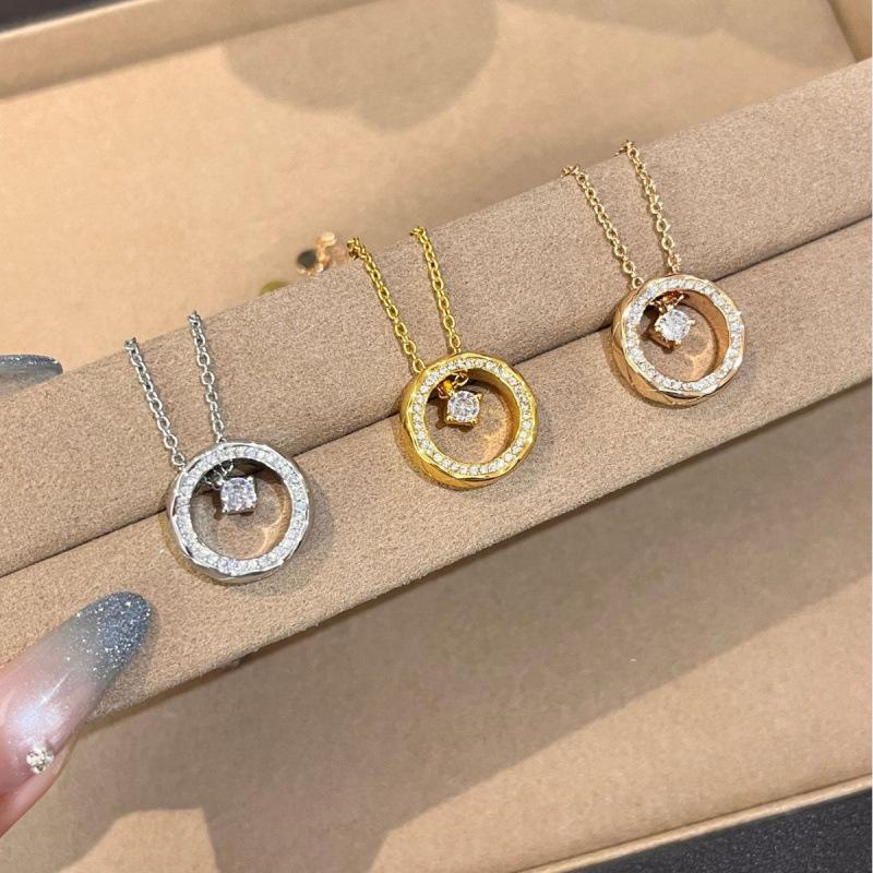 Colar de Diamante Único Círculo Vintage Co Versátil Exquisito Pingente com Padrão Cruzado Colar de Alto Bom Gosto