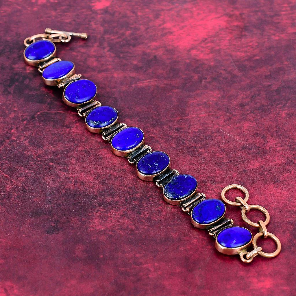 Lapis Lazuli Gemstone Bracelet Copper Adjustable Chain Bracelet Handmade Jewelry