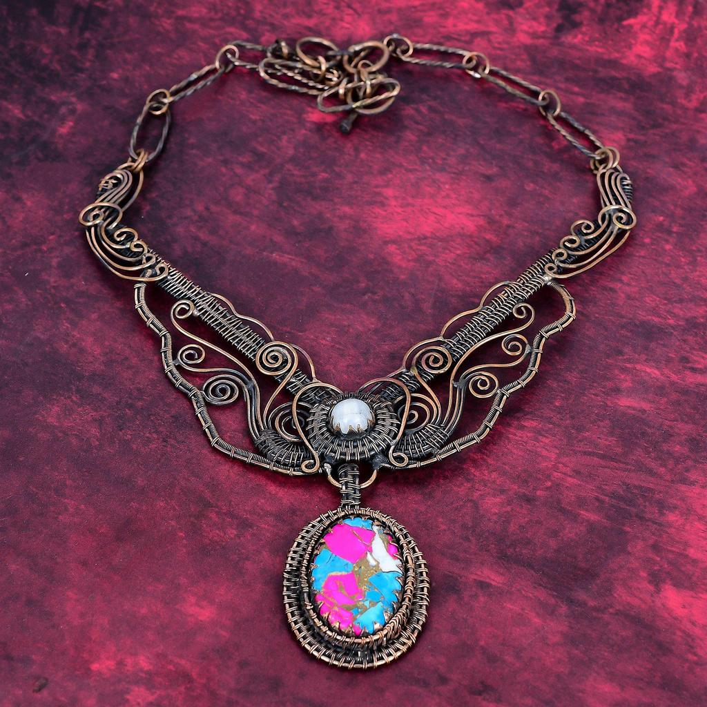 Colar Turquesa Algodão Doce Joias de Pedra da Lua Arco-Íris Colar Ajustável Enrolado em Fio de Cobre