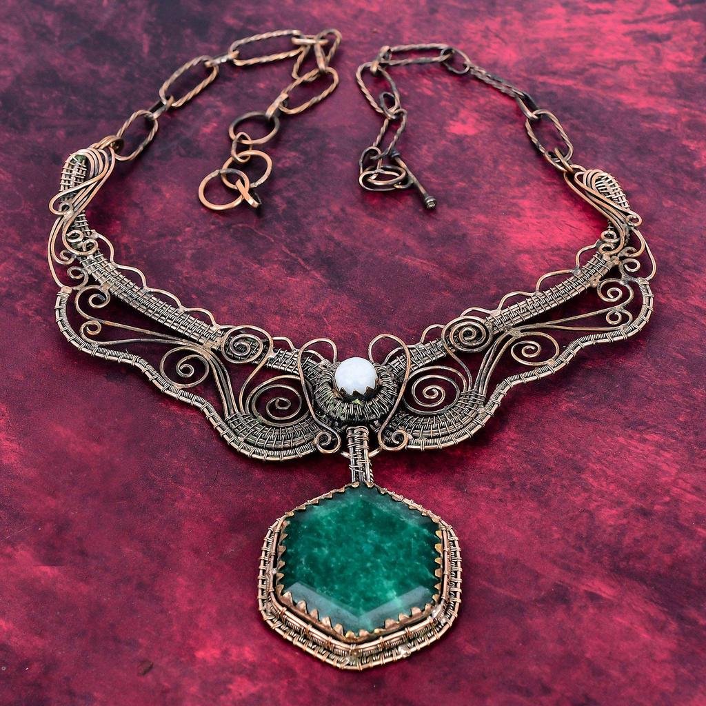 colar de esmeralda zambiana facetada joias enroladas em fio de cobre colar de pedra da lua natural joias artesanais com pedras preciosas colar com corrente ajustável