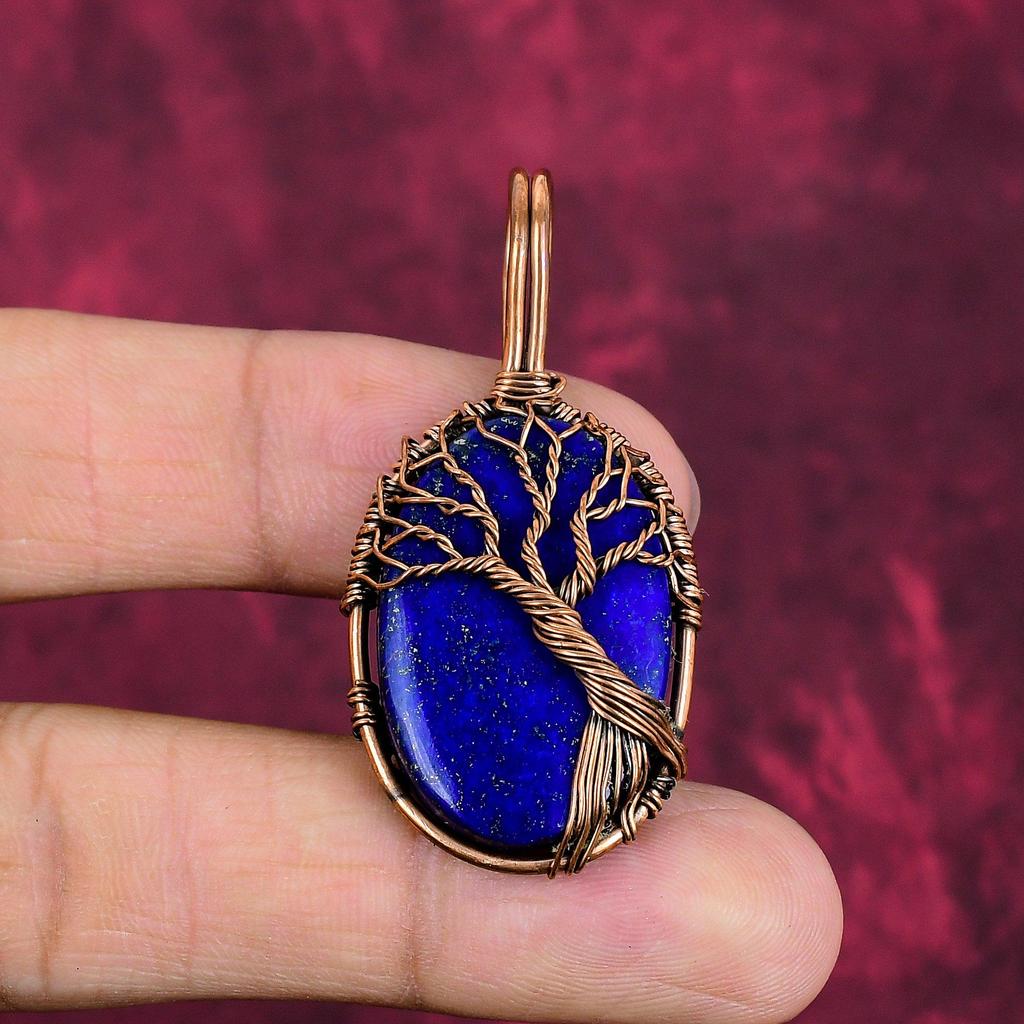 Tree Of Life Lapis Lazuli Gemstone Pendant Copper Wire Wrapped Handmade Jewelry