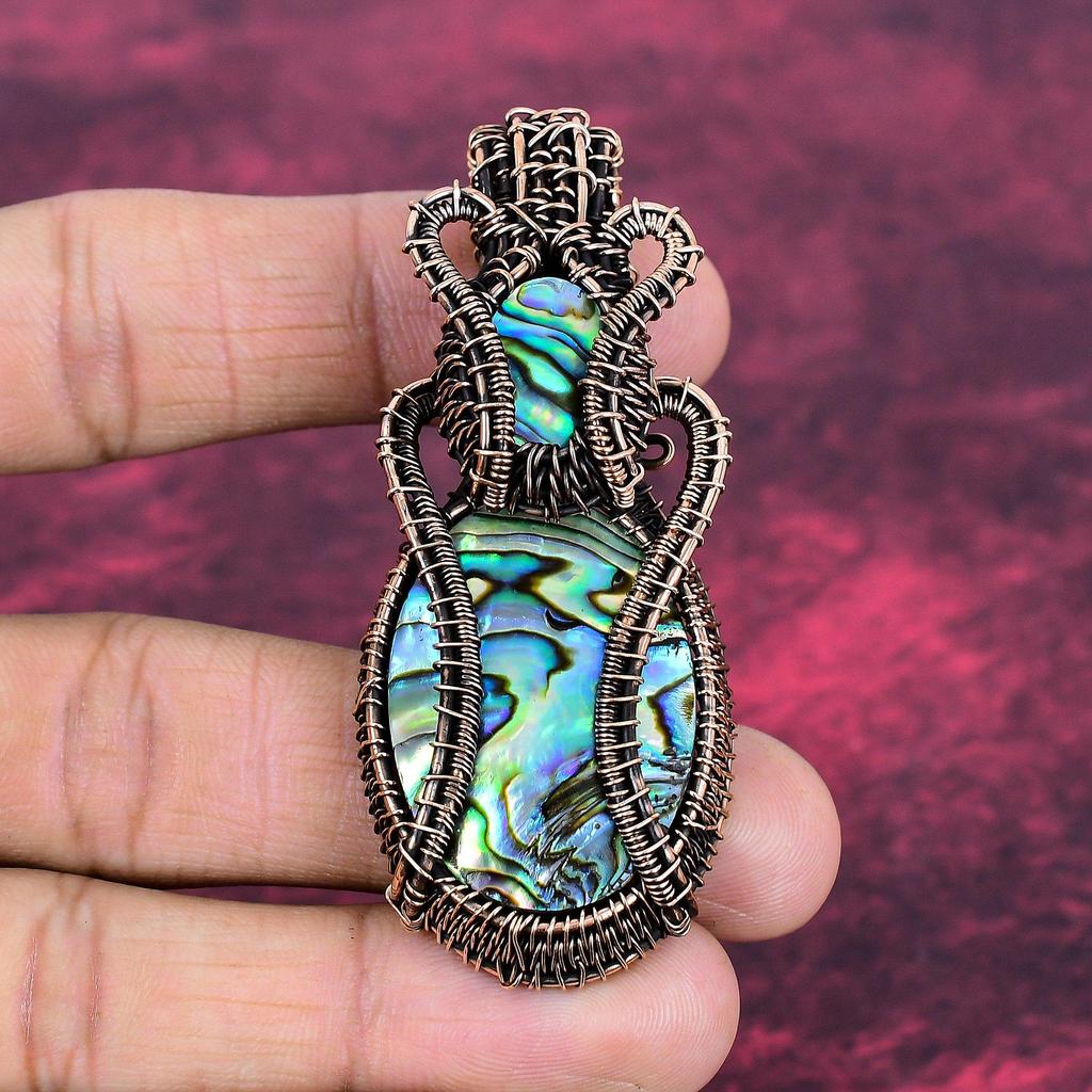 Abalone Shell Gemstone Pendant Copper Wire Wrapped Pendant Handmade Jewelry