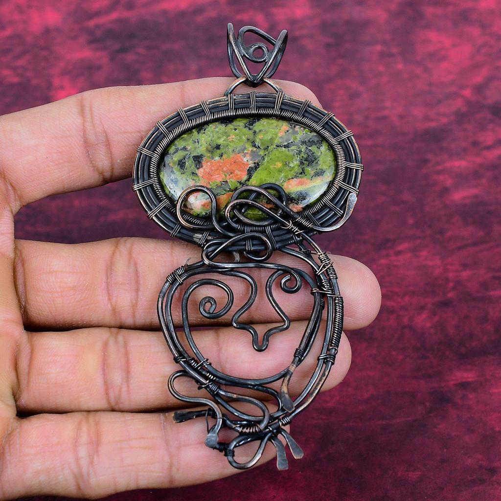 Unakite Gemstone Pendant Copper Wire Wrapped Pendant Handmade Brand New Jewelry