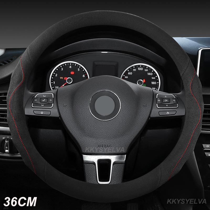 Capa de Volante de Couro de Vaca Camurçado 36cm Tamanho S para Honda Civic Ciimo Jade SUZUKI Alto NISSAN Juke Acessórios Automotivos