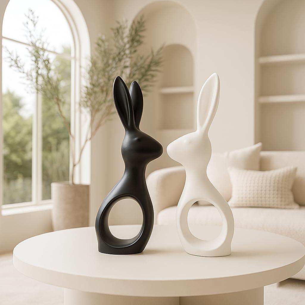 Home Decor Rabbit Pair Elegant Design (Black & White)