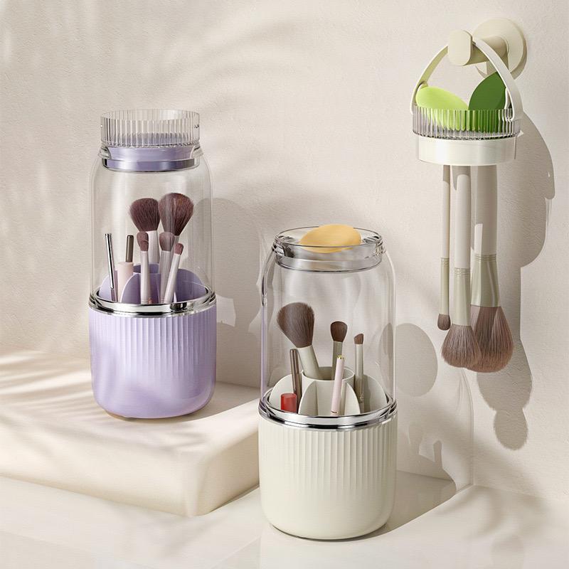 360 Rotating Makeup Brush Organizer Washable Drying Vanity Storage Box for Brushes Eyeshadow Lipstick Dustproof