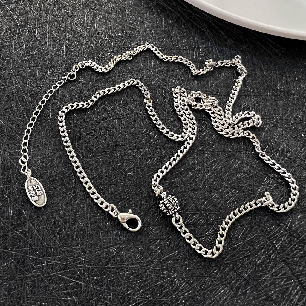 Colar de Suéter Corrente Lateral Coroa Tailandesa Vintage Feminino Corrente Nua Corrente Universal Pingente Vestível Luz Acessórios de Nicho de Luxo