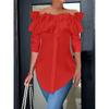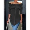 Nova Blusa Feminina Casual de Manga Longa com Babados Off Shoulder para Primavera, Cor Sólida, Corte Slim, Moda para Escritório
