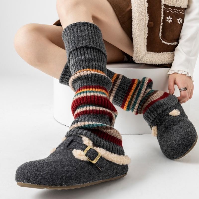 American Retro Fashion Sense~ Rainbow Striped Wool Contrasting Color Calf Socks Cover Tide Warm Ethnic Style Stacking Socks