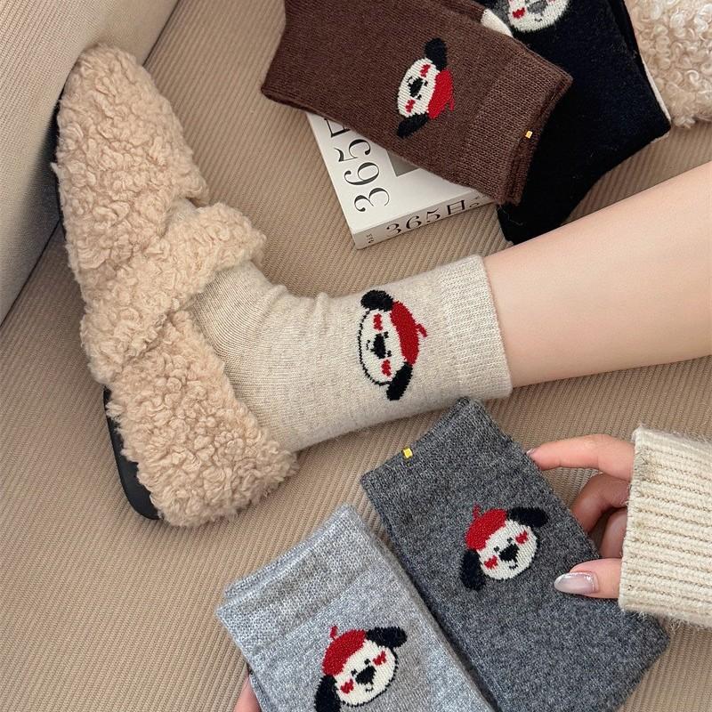 Socks Girls Cute Puppy Wool Socks Stacked Socks Girls Cartoon Thickened Warm Medium Socks Socks