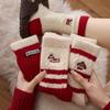 Red Australian Velvet Socks Female Cute Flower Bow Embroidered Medium Tube Socks Velvet Thickened Warm Winter Sleep Socks