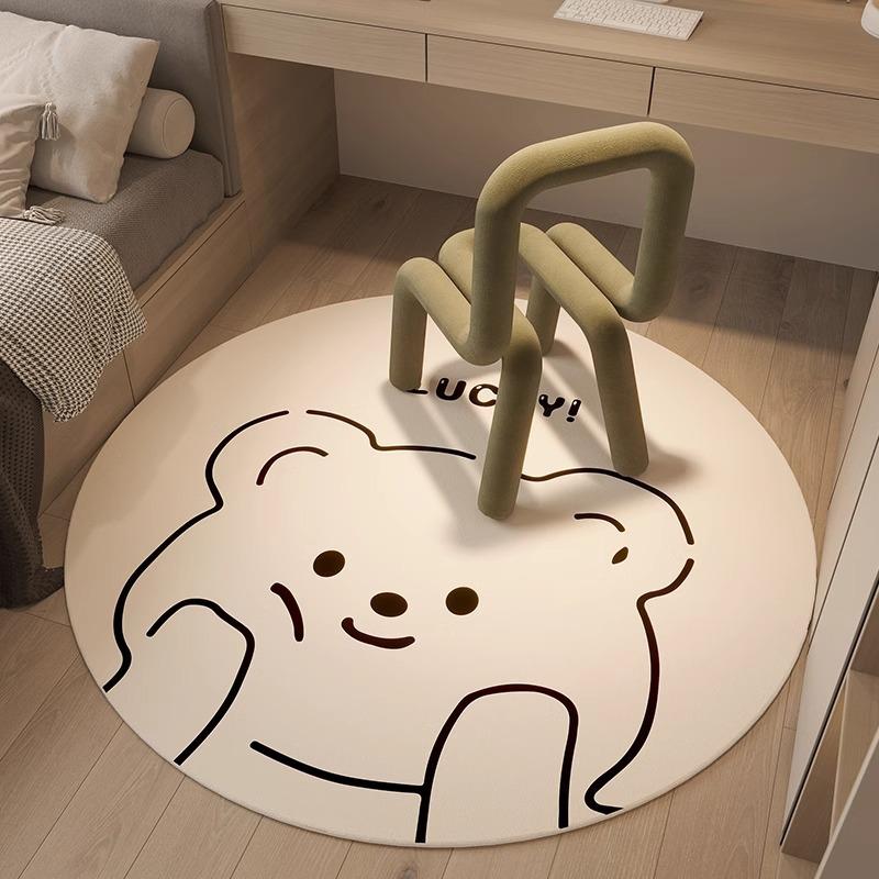 Cartoon Bear Pattern Round Carpet Minimal Cute Non-Slip Rug Daily Home Decoration Floor Mat for Living Room Bedroom Balcony